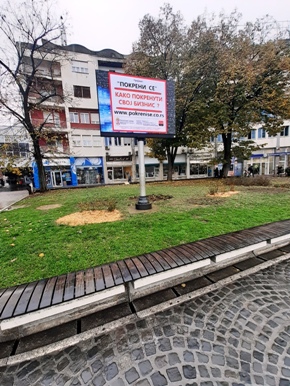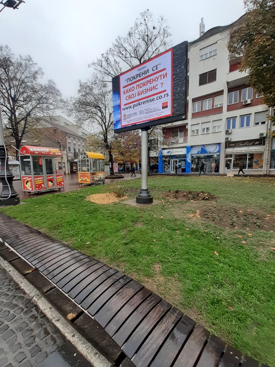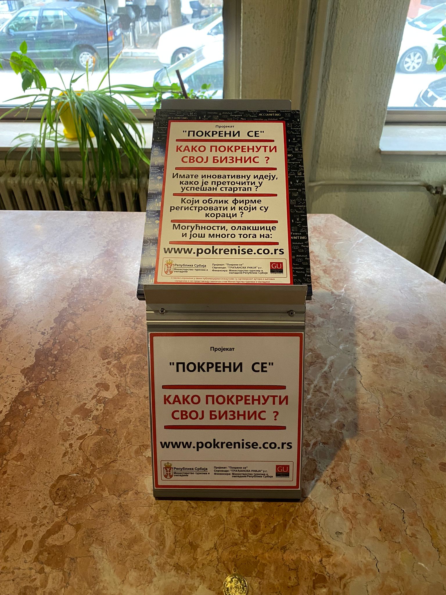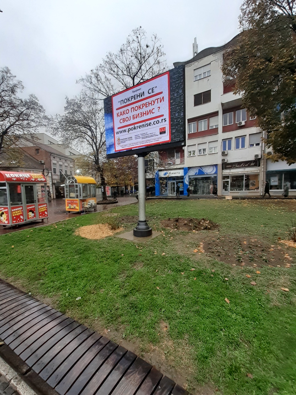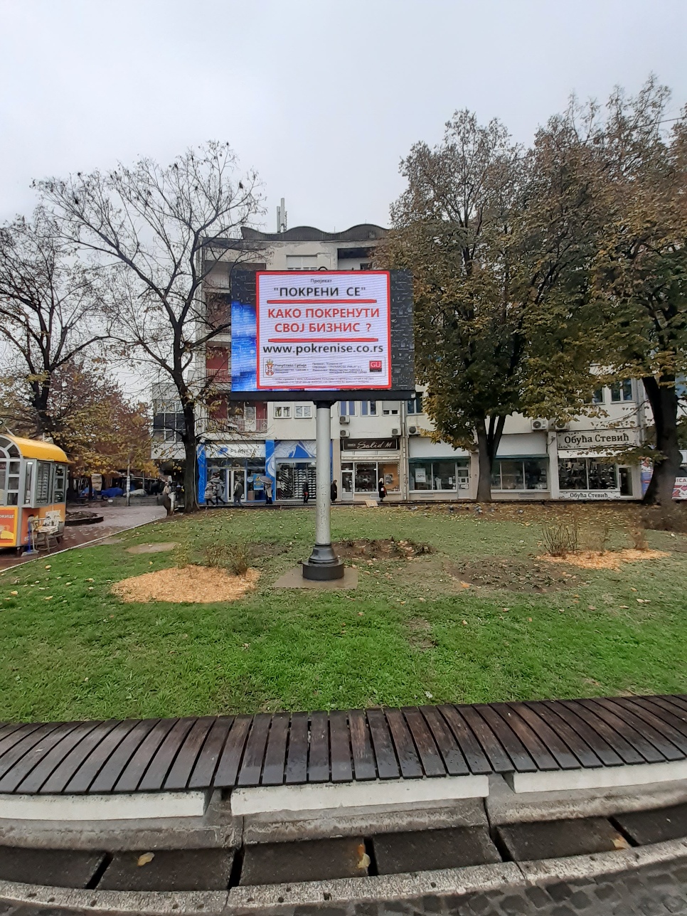 budjenja preduzetnickog duha kod mladih. 18.11.2024 Promocija projekta "Pokreni se" na LED bilbordu u centru Kraljeva.