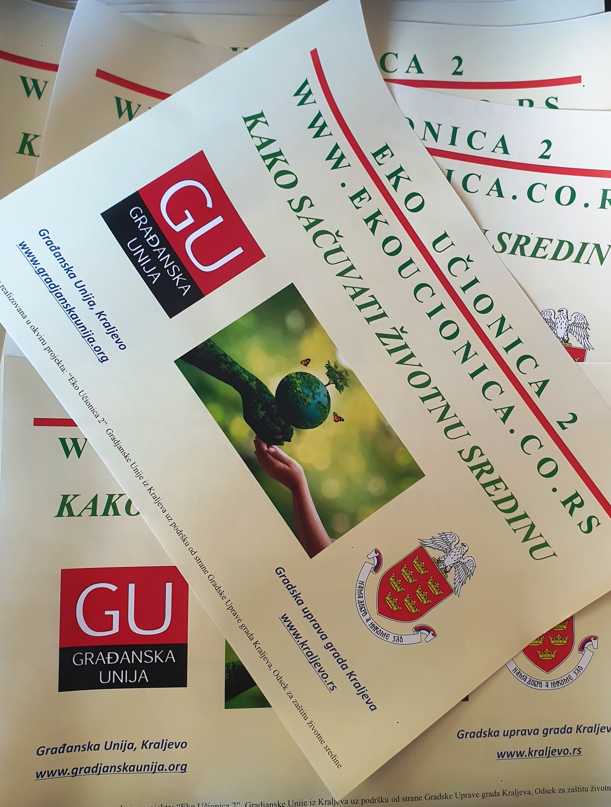 24.10.2023 Kontinuitet u neformalnom obrazovanju je neophodan za postizanje maksimalnih rezultata. Iz tog razloga, trudili smo se da i ove godine koliko su to uslovi i sredstva dozvoljavali, zadrzimo se na podizanju ekoloske svesti kod gradjana, sa akcentom na mlade, a uz podrsku grada Kraljeva. Ove godine smo kroz projekat "Eko Ucionica 2", kroz izradu novih brosura sa nastavkom ekoloskih tema, stampu i deljenje promotivnih flajera, lepljenje plahata, ali i izradom novog edukativnog videa postavljenog na YouTube , a sve praceno novim sajtom na starom domenu www.ekoucionica.co.rs cime smo edukacije prosirili i van granica nase opstine, na celu Republiku Srbiju. G.U. Projekt Team