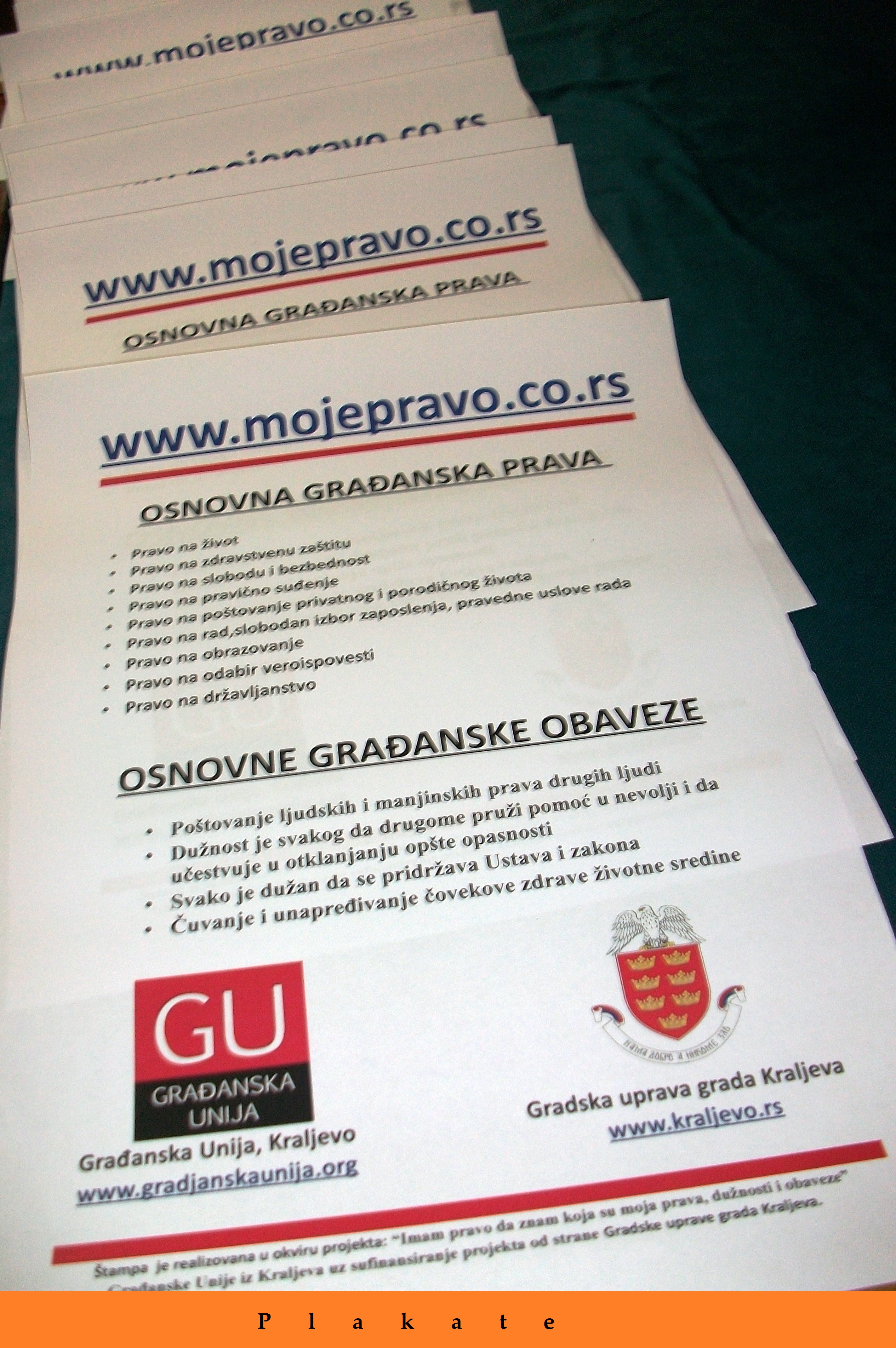 29.05.2019 Gradjanska Unija pocinje sporvodjenje projekta: "Imam pravo da znam koja su moja prava, duznosti i obaveze" , u saradnji i uz sufinasiranje projekta od strane Opstinske uprave grada Kraljeva.