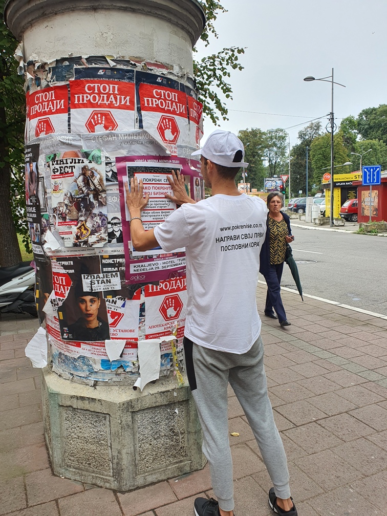 obaveze", deljenje flajera, lepljenje plakata, deljenje brosura .
